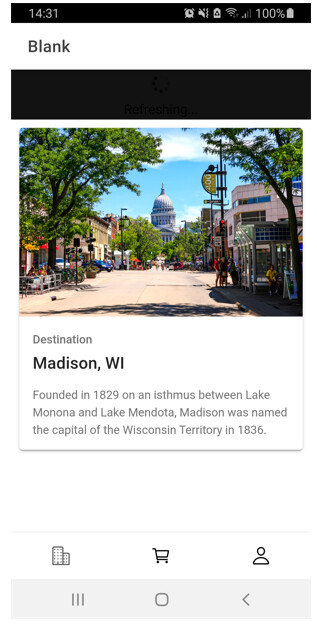 so I left on a new blank application. I made a modification on the home page by adding a refresher, a card and a footer.