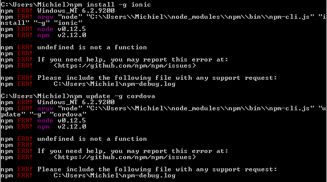 I’m trying to install cordova and ionic, after long struggeling i managed to install cordova, now i want to install ionic but i keep getting errors. I already tried all the solutions i could find but none seem to work. After some trying the error that i have now is already different from the error i had in the beginning. Now this is the error i have: