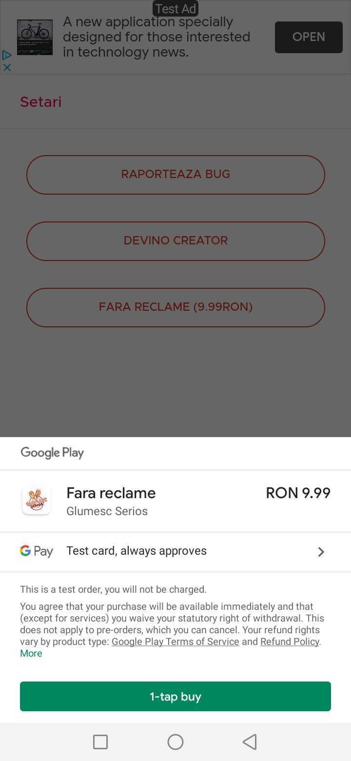 Also the account that I have on developer console is the same with the one that I’m logged in Google Play, so in production I still see the test mode ( but I asked some friends to send me a screenshot for different accounts), see the below screenshots Mine: