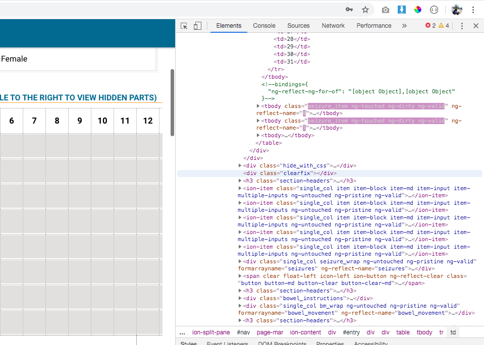 Furthermore, when you check the DevTools in chrome, the iterated <tbody> tags are blinking in purple continuously all the time. Does it mean some function or event is running all the time that causes the form to become sluggish?
