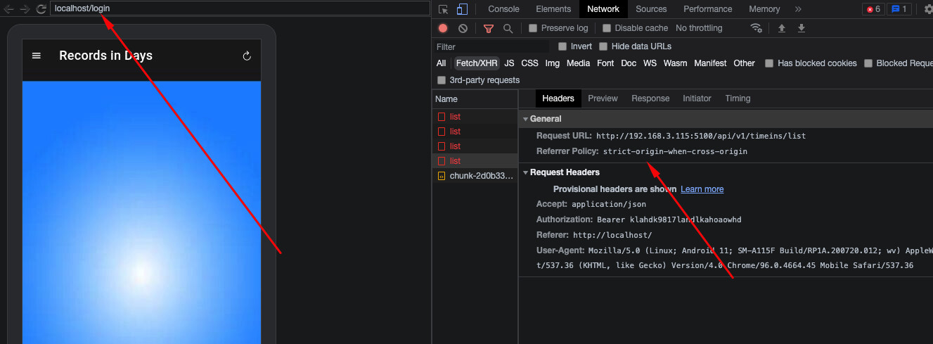 This is the build version of the app, trying to connect on my API using axios