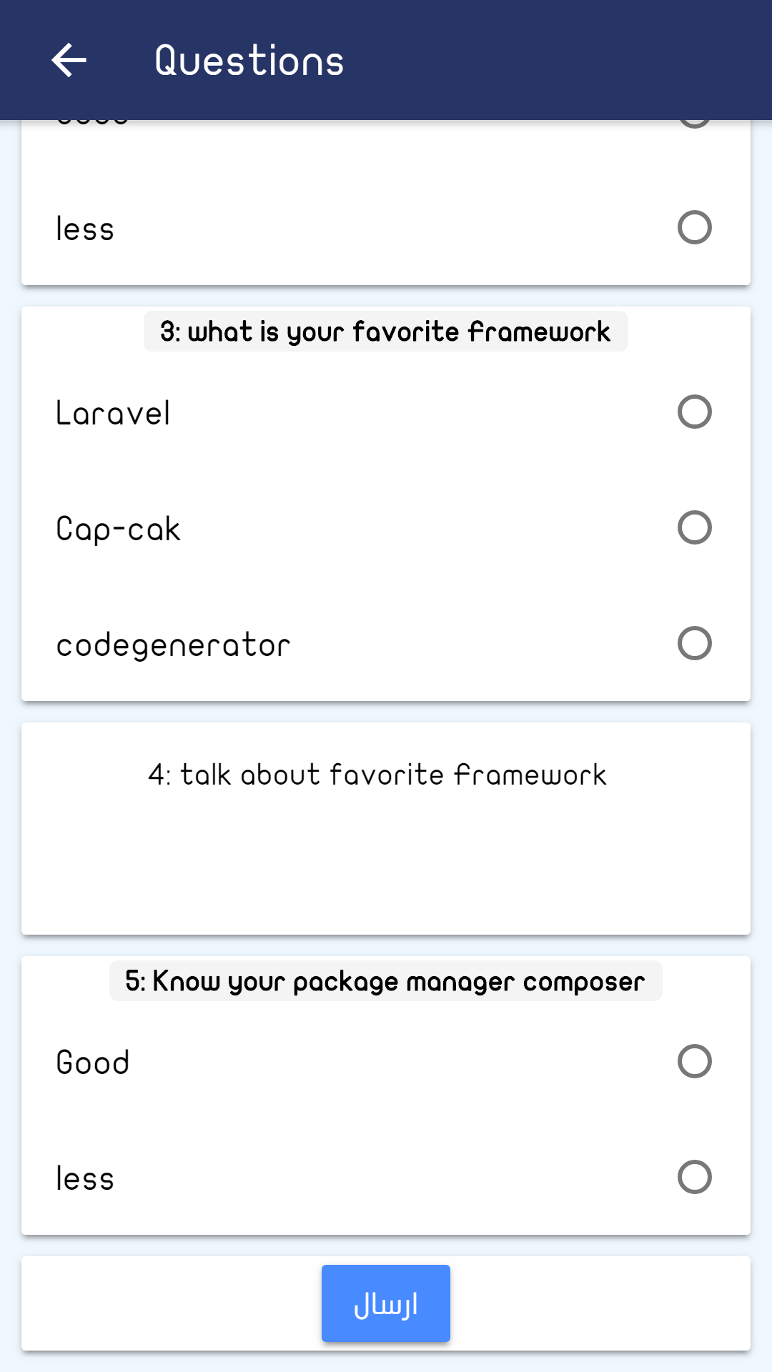 so i have multiple Data From DataBase like Question And Answer (CheckBox,or Radio, or Text).